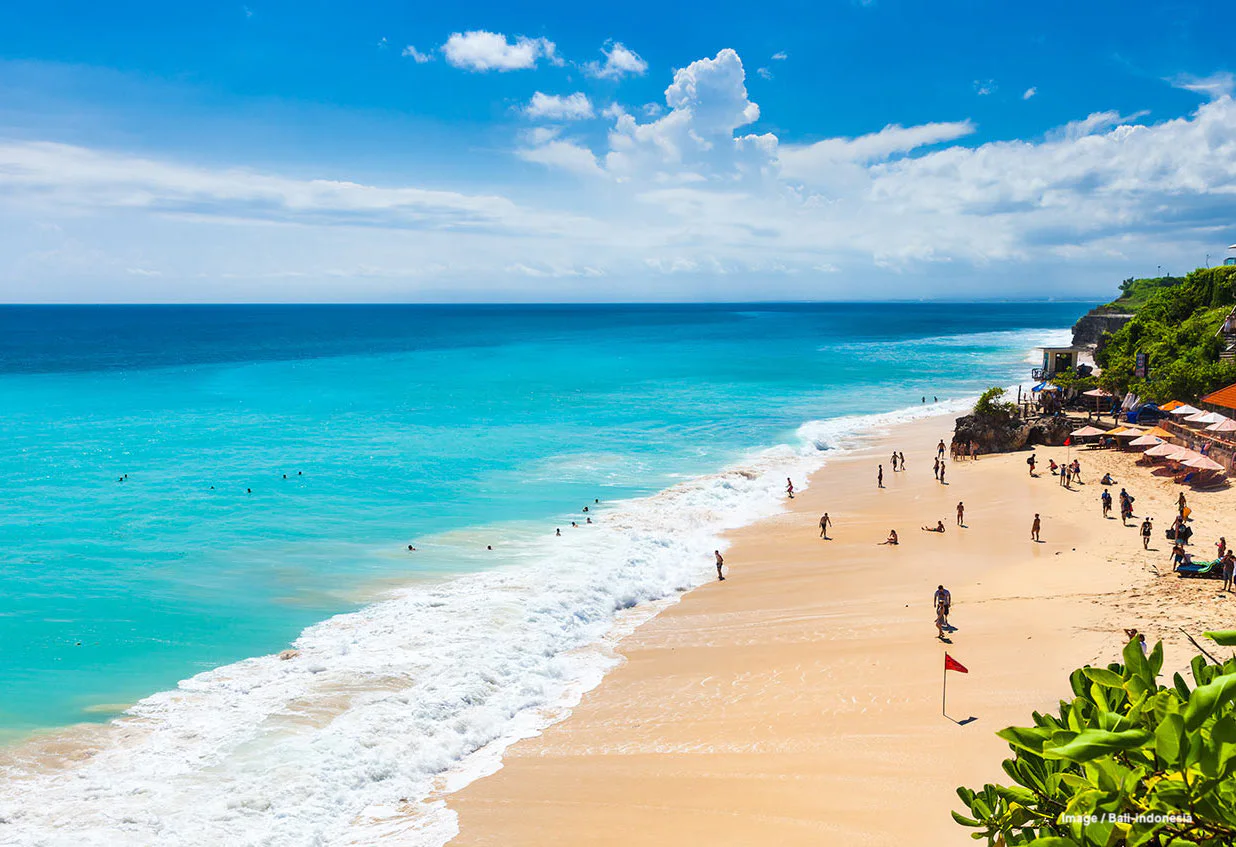 One of the top sandy destinations on the island, it remains relatively secluded despite renewed and improved access points via the Pecatu Graha and Pecatu Indah Resorts. Enjoy some of Uluwatu’s best reef breaks near the shore or lay back on a rented deck chair in privacy as you soak up the morning sun.